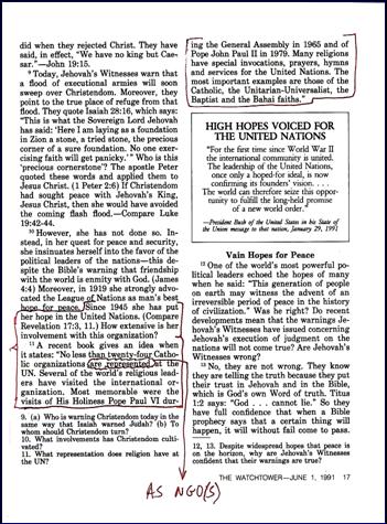 featuring the September 8th, 1991 Awake! shocking article on United Nations!) |